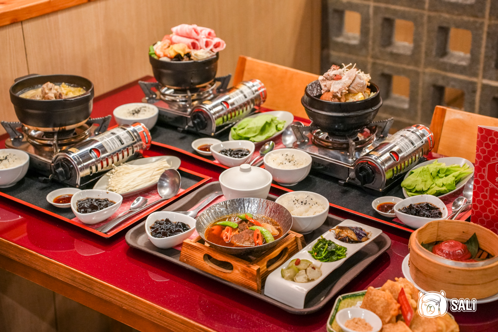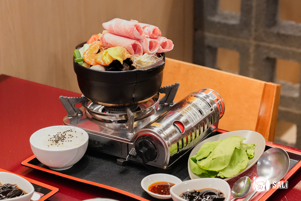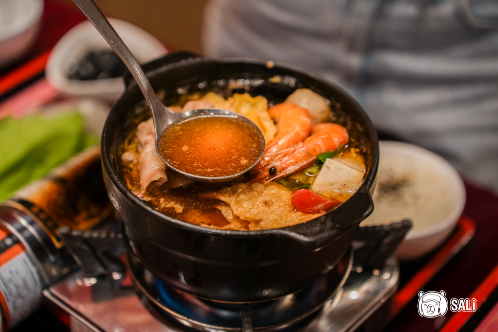 這鍋配料真的澎湃到快滿出來!從粉嫩豬肉片、鮮蝦、大塊豆腐、魚丸到多樣時鮮蔬菜,色彩繽紛且份量十足,光看就食指大動。