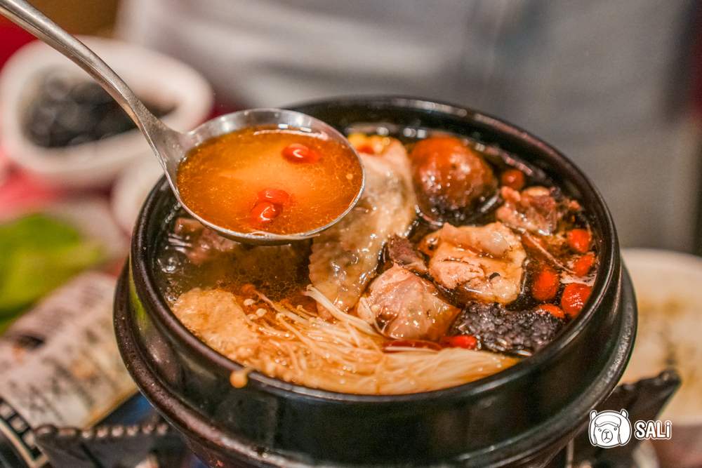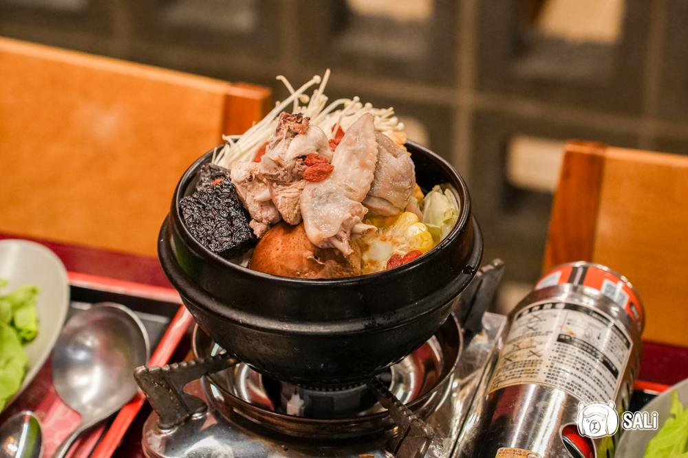 經典麻油雞鍋隨著燉煮,溫潤的麻油香氣飄散,這股香氣對麻油控來說真的很難抗拒,湯頭以老薑與頂級麻油爆香,襯著米酒熬出甘甜,濃厚卻不燥熱,特別是經過烹煮後酒氣揮發,只剩下清爽的甜味,喝起來完全沒有傳統麻油雞常見的油膩負擔感。