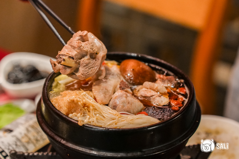 這鍋完美復刻濃厚的古早台味,湯底用大量扁魚熬出鮮美,再與沙茶醬炒出醇厚香氣,煮滾時那股芬芳撲鼻而來,濃郁卻不死鹹,是那種會讓人想把湯喝光的開胃層次。豬肉吸滿湯汁後滑嫩入味,蔬菜則釋放出自然甘甜,整鍋隨著燉煮越發迷人