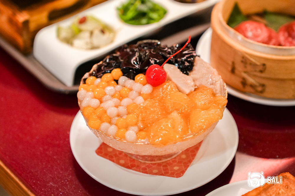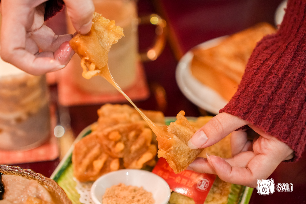 麵茶炸年糕 是我每次來必點的私心名單,外皮炸得酥脆,裡頭卻軟糯得完全不黏牙,甜度控制得恰到好處,咬開時要小心那種微爆漿的熱度,再沾上厚厚一層焦香麵茶粉,那股老派的甜香氣息真的很迷人。這道點心不僅有著步步高升的好寓意,那份純粹的古早滋味,真的會讓人忍不住一口接一口