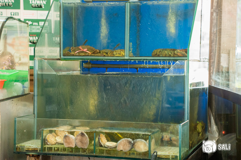 一走進店裡,右手邊就是冰櫃與水族箱,沙公、沙母生猛活跳,新鮮漁獲整齊陳列,光看就讓人食指大動。除了固定菜色,還能依照預算客製料理,價錢合理、功夫到位,早就擄獲不少顧客的心