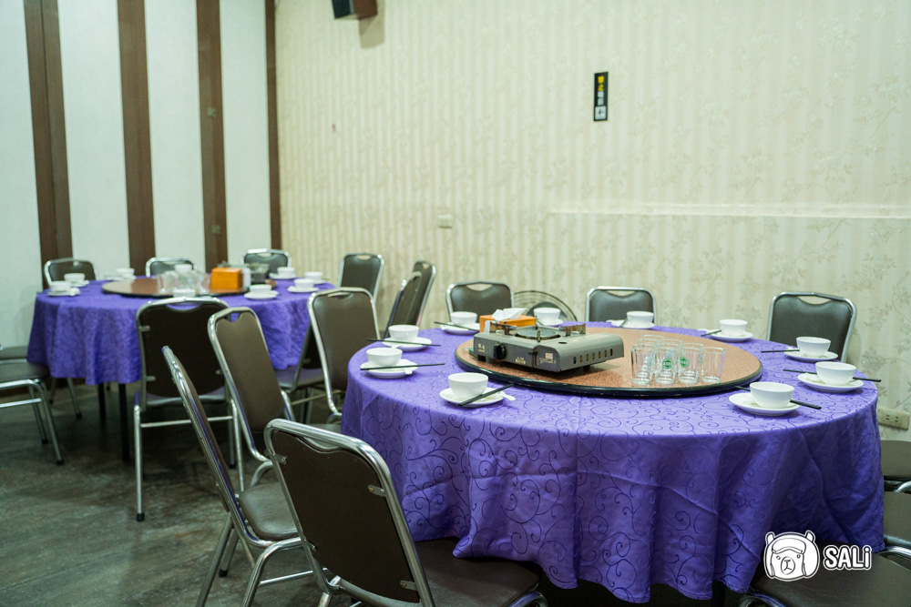 店內挑高明亮,以圓桌為主,不論家人聚餐還是朋友相約,都能坐得寬敞不擁擠,開放式用餐區大約有5桌,另設有三間獨立包廂,部分包廂低消6,000元起,活動屏風打通後,最多可容納約40人同桌歡聚
