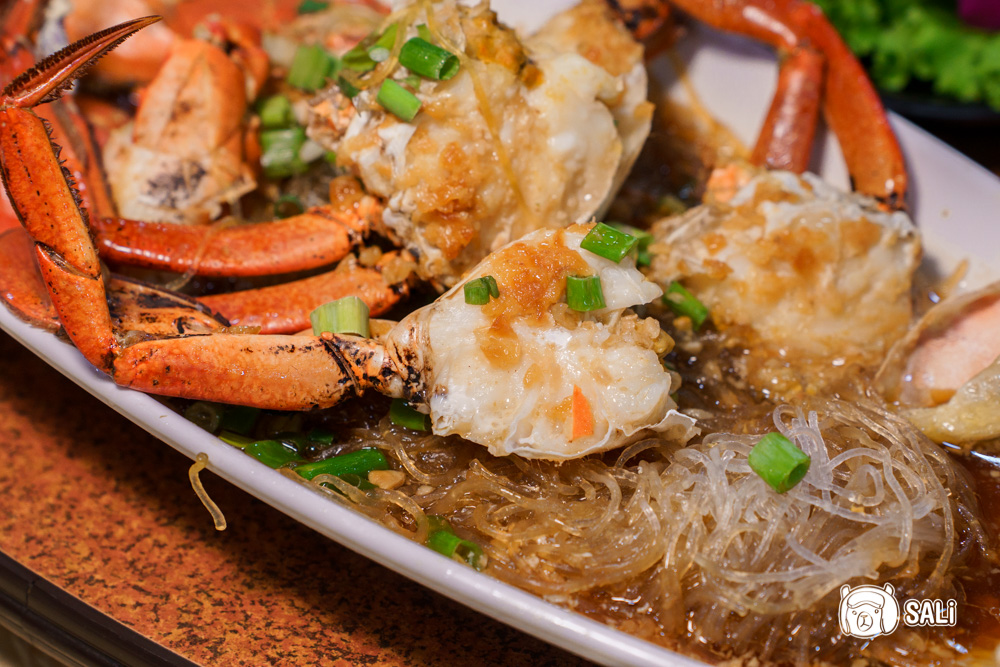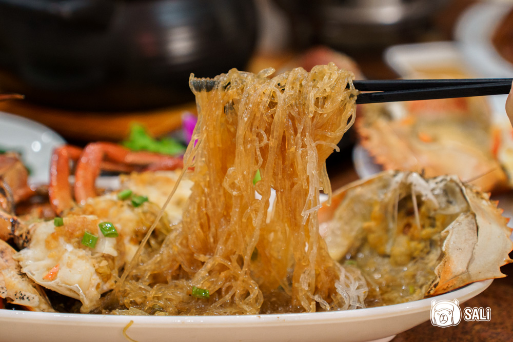 底下鋪的粉絲吸飽蟹汁精華,每一口都鮮香,阿祥師還加入生熟蒜頭與自制干貝XO醬一同蒸煮,蒜香濃郁海味加倍,粉絲與蟹肉一起入口,越吃越涮嘴