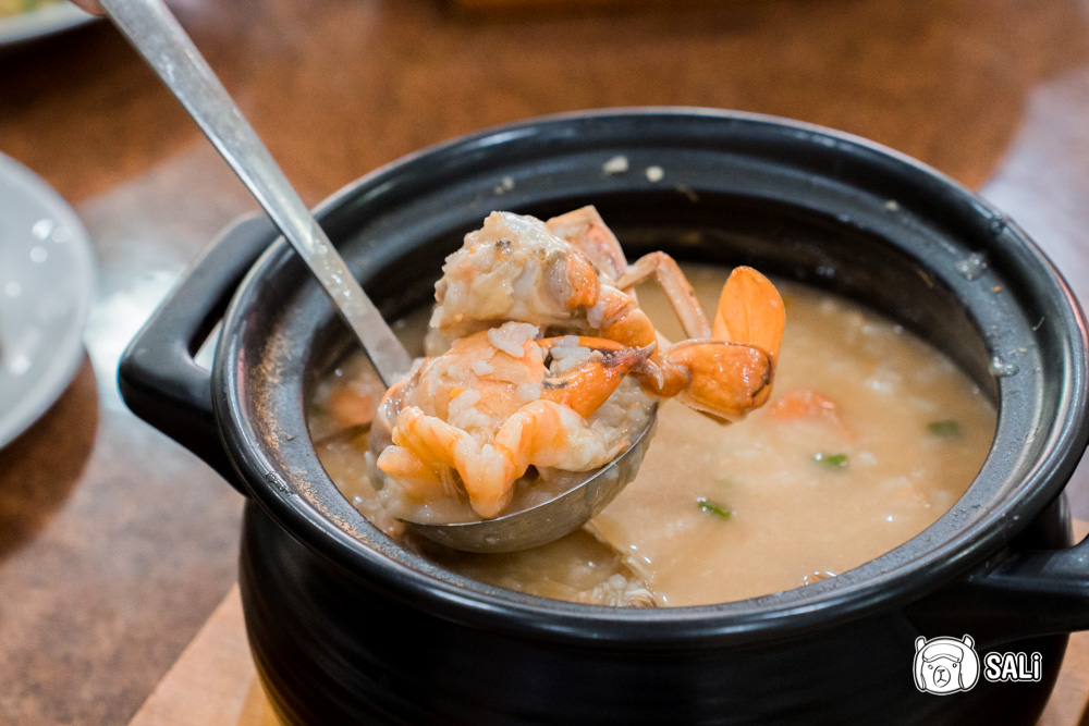大祥的招牌菜色必點紅蟳鮮蝦粥,以生米慢火熬煮到「米粒綿爛、湯粥合一」,粥底用豬大骨、雞骨與烤過的堅果慢熬,滋味濃郁厚實。紅蟳、白蝦逐一放進去熬煮,連蝦子都貼心對切,讓蝦膏、蟹膏完整融進粥裡,每一口都是滿滿海味