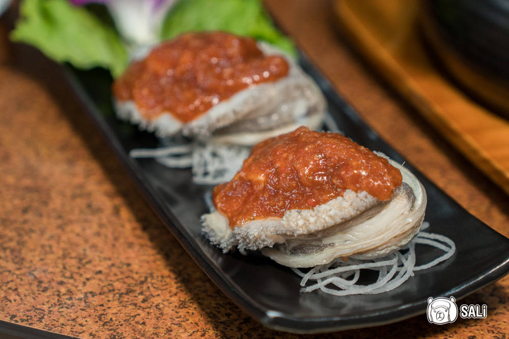 嚴選宜蘭新鮮大鮑魚,肉質厚實帶彈性,咬下去鮮味立刻釋放。搭配酸甜微辣的五味醬,清爽又開胃,若喜歡嗆香風味,也能換成芥末醬,展現另一種爽快滋味