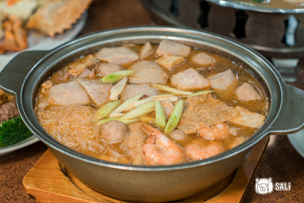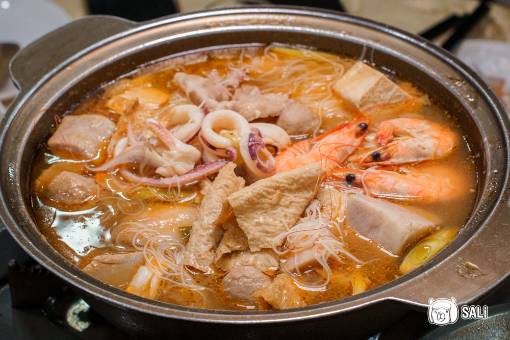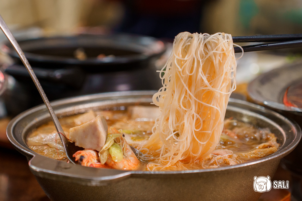 新竹米粉吸收湯底精華,滑順帶勁;芋頭綿鬆卻不會化掉,和海鮮的鮮香交織,喝一口就停不下來,料足湯濃,想續湯還能免費加,聚餐來一鍋最是實在