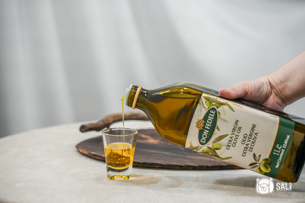 DON FEDELE 的特級初榨冷壓橄欖油,是我近期最常用的一瓶,純飲、涼拌都很順手,採第一道冷壓,油色清透,成分乾淨,Omega 接近 7 成,並通過無農殘、無芥酸、無黃麴毒素檢驗,發煙點約 190–200°C,冷料理最合適,低溫加熱也能應付。