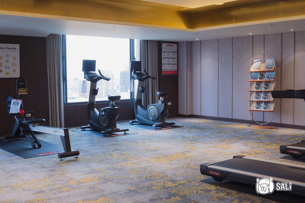 旅途中還是想動一動的人,福容徠旅高雄也有提供健身房,空間不算誇張寬敞,卻剛好夠用,跑步機、健身車等,基本設備一應俱全,窗邊還能看到城市街景,貼心提供毛巾和礦泉水,健身房從早上七點開到晚上十點,住客都可以自由使用。