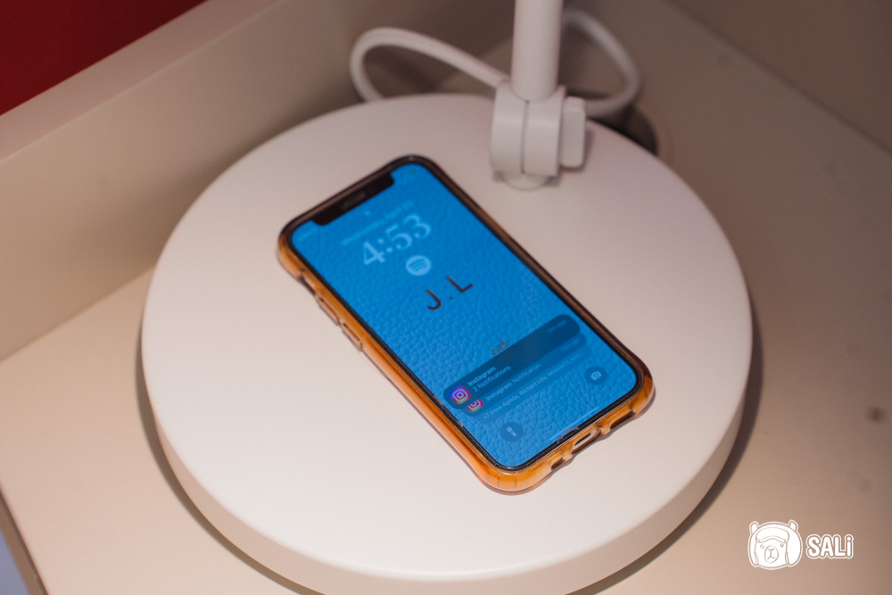 工作桌上的檯燈,除能照明之外,還有無線充電功能