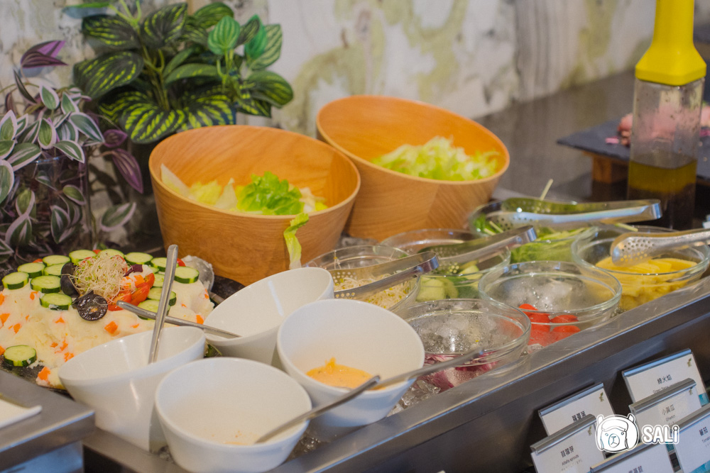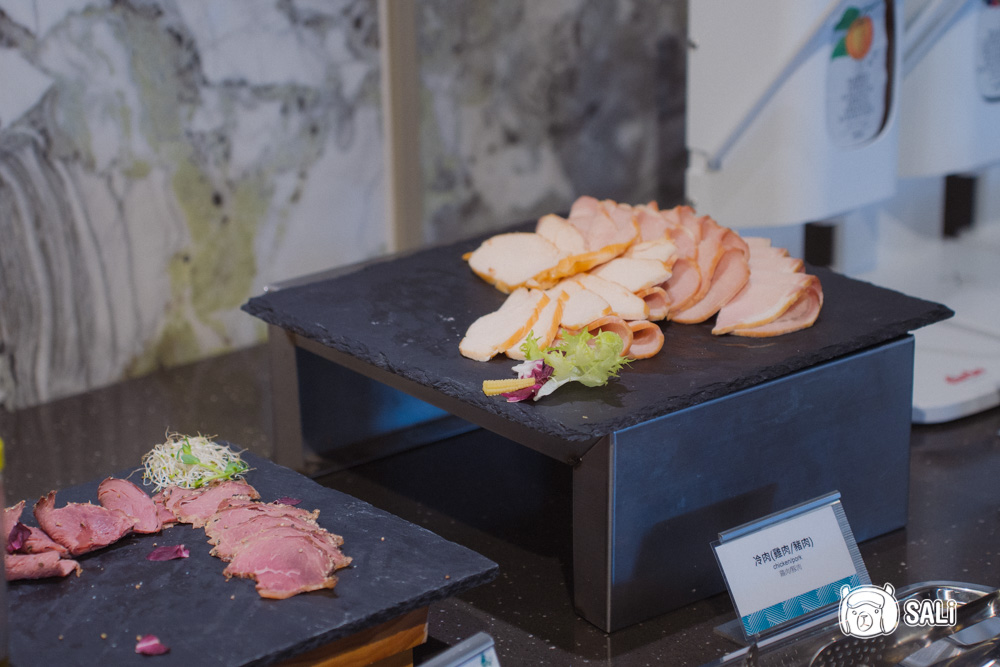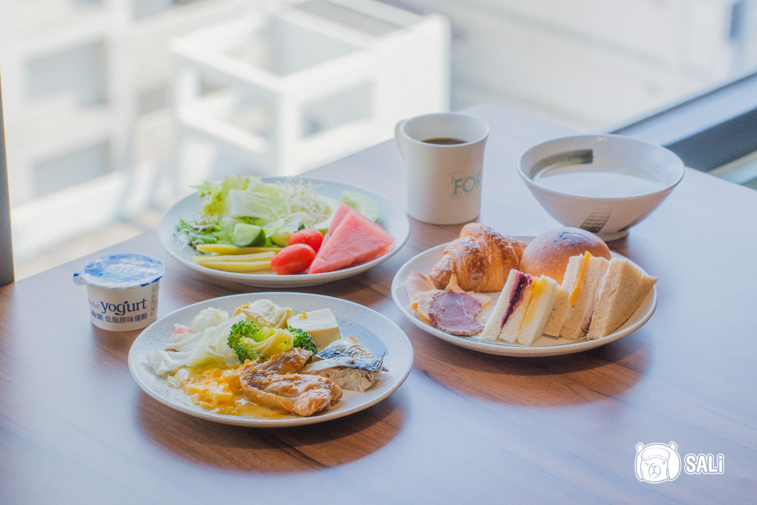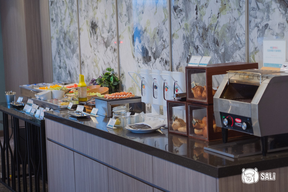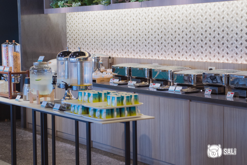 早餐一樣在16樓餐廳享用,採自助式buffet,中西式餐點一字排開,從中式熱炒、白粥配醬菜,到西式麵包、優格、水果沙拉通通有,雖然品項不是爆炸多,但每一道看起來都滿有誠意,熱菜也是現做的,還能吃到一點變化