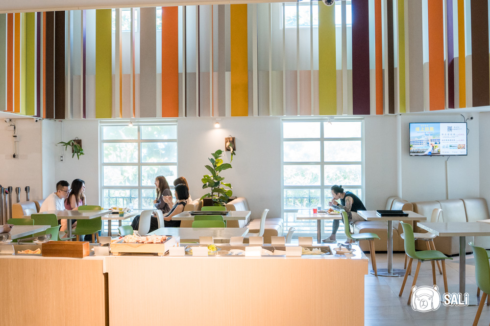 挑高的一樓大廳結合餐廳空間,採光極好,陽光整片灑進來,不出門也能感受南國氣息,這裡不只能吃早餐,等房時也能坐下休息、聊天放空,享受迎賓下午茶的小點心,餐廳空間開放,想買些墾丁美食回來吃也沒問題