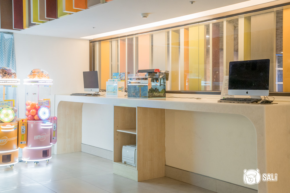 我很喜歡福容徠旅墾丁店挑高的大廳設計,陽光可以恣意灑進來,整個空間明亮又不依賴過多燈光,既有氛圍也環保,視覺色系活潑繽紛,像馬賽克拼貼,把不同顏色的個性都拼進空間裡,用顏色在說故事,讓整間飯店看起來像是在發光。