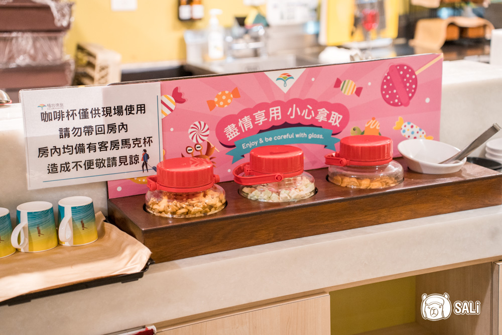 辦理入住的下午時段,一樓餐廳有提供迎賓小點心,現煮咖啡、茶包和餅乾可以自由取用
