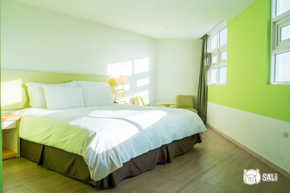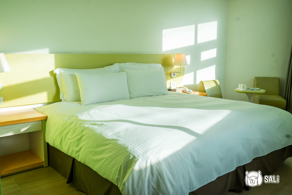 這次前往福容徠旅墾丁,入住輕旅雙人房,房間配色走翠綠路線,多了些貼近自然的清爽感,和我之前住過的高雄店風格很不同,望向窗外直接眺望大灣沙灘,一早拉開窗簾,陽光整個灑進來,空間瞬間明亮,還沒出門就先有度假的氣氛