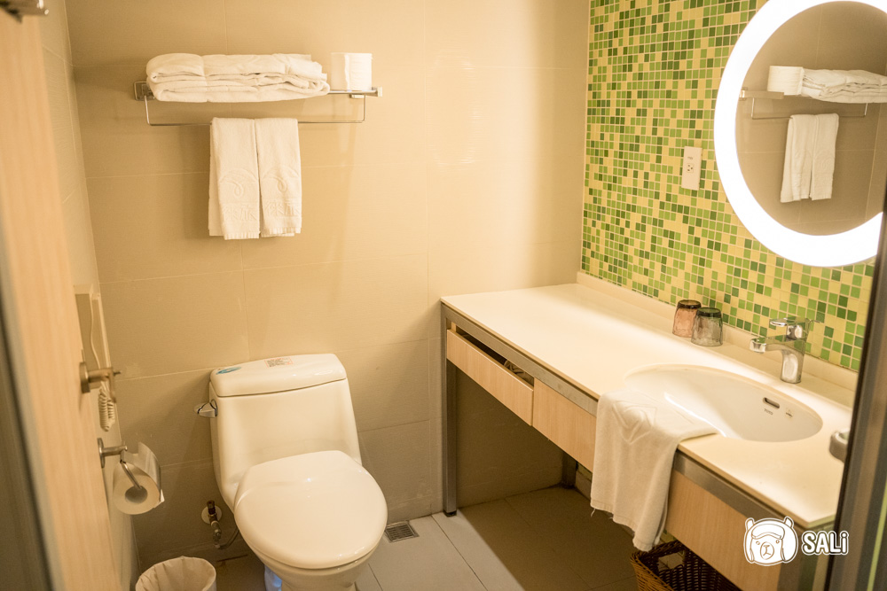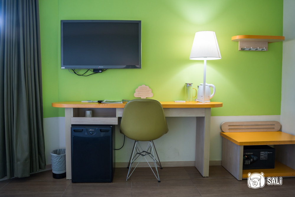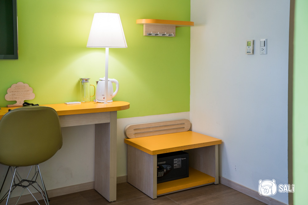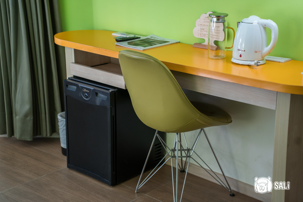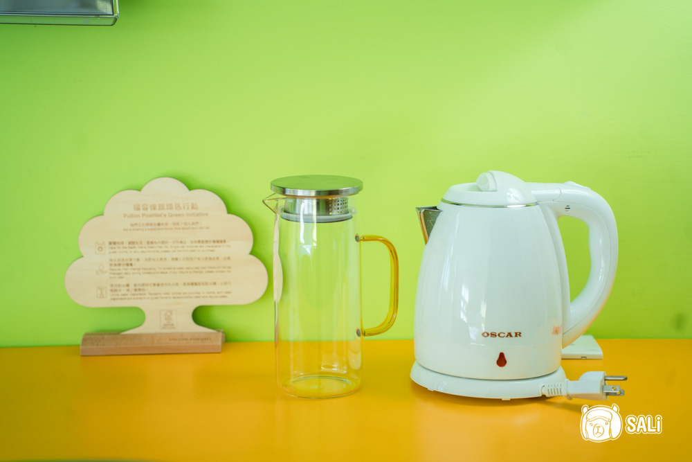 房內設備齊全,有電視、冰箱、衣架、熱水壺和保險箱,基本需求都照顧得很到位,福容徠旅墾丁響應環保,房內不提供瓶裝水,但有附玻璃水瓶,走廊也設有飲水機,記得自備水壺裝水,墾丁天氣熱情得很,多補充水分,才不會曬一曬就中暑啦!