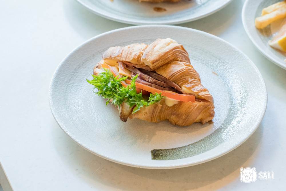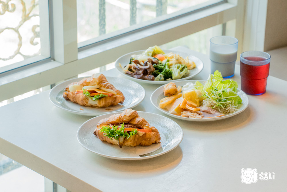 其中最驚喜的是有每人一份的現做可頌,有三種口味可選。我選牛肉及蛋沙拉,外層酥到不行,當早餐真的很有滿足感