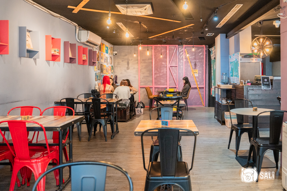 瑰覓 GuiMi 以木質工業混搭風,用餐空間採光明亮、座位間距不壅擠,氛圍自在舒適,牆上掛著黑膠唱片、老式電話、飛鏢盤等小物,帶點懷舊氣息,店裡還設有拍照牆,無論是朋友聚餐、情侶約會,或想拍幾張生活感的照片,都能輕鬆留下美好片刻