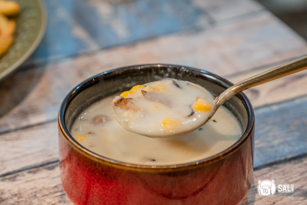 質地滑順,喝得到玉米的自然甜味與菇香層次,奶香溫潤不厚重,入口柔和又舒服