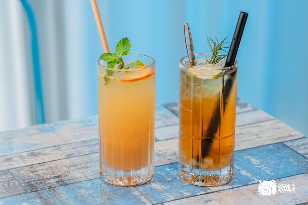 覓丁丁果汁 155元、黑醋栗柳橙氣泡飲 150元