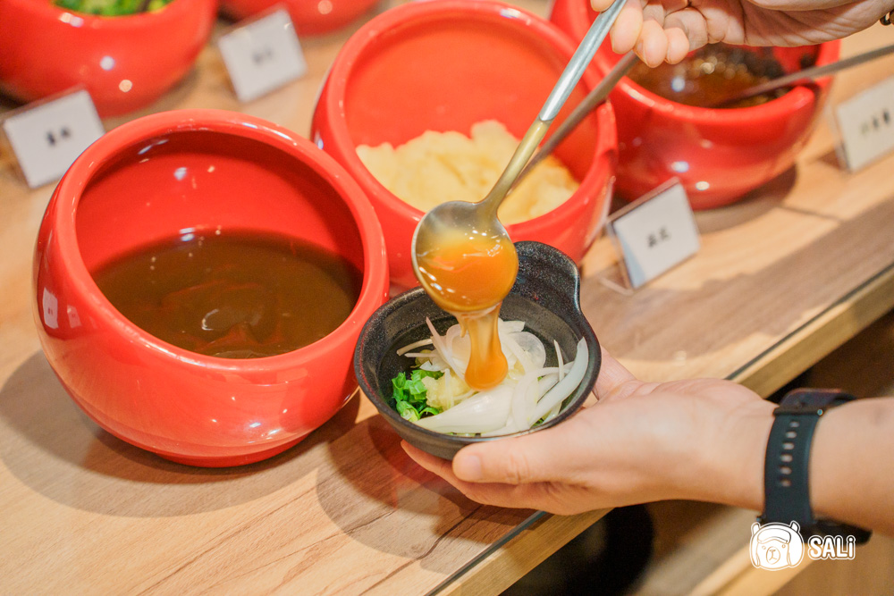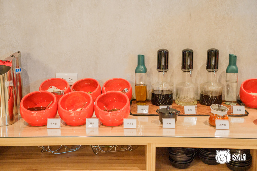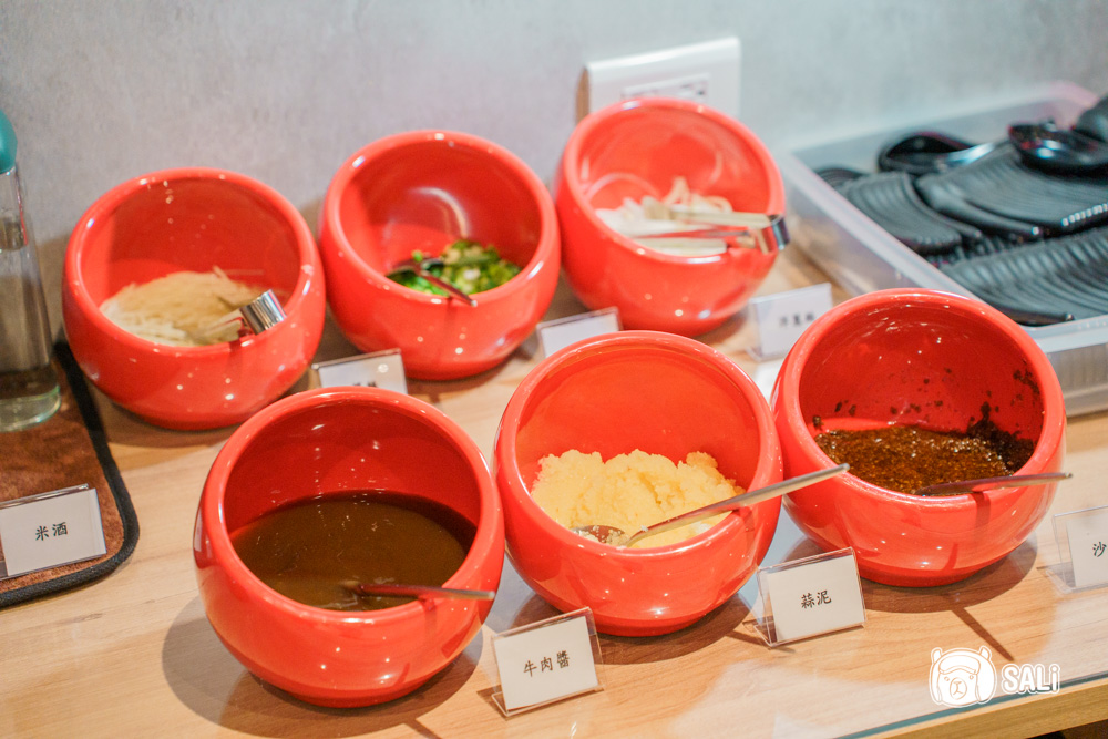 醬料區整理得乾淨俐落,可依照喜好自由調配,招牌牛肉醬,是喜歡牛肉湯的人都熟悉的那種甜醬油底,加入蔥花、洋蔥、薑絲、大蒜後,拿來沾現涮牛肉特別對味。如果偏好帶點酒香,現場的桌面和醬料台也有提供米酒,可以依自己口味斟酌添加,讓風味更有層次