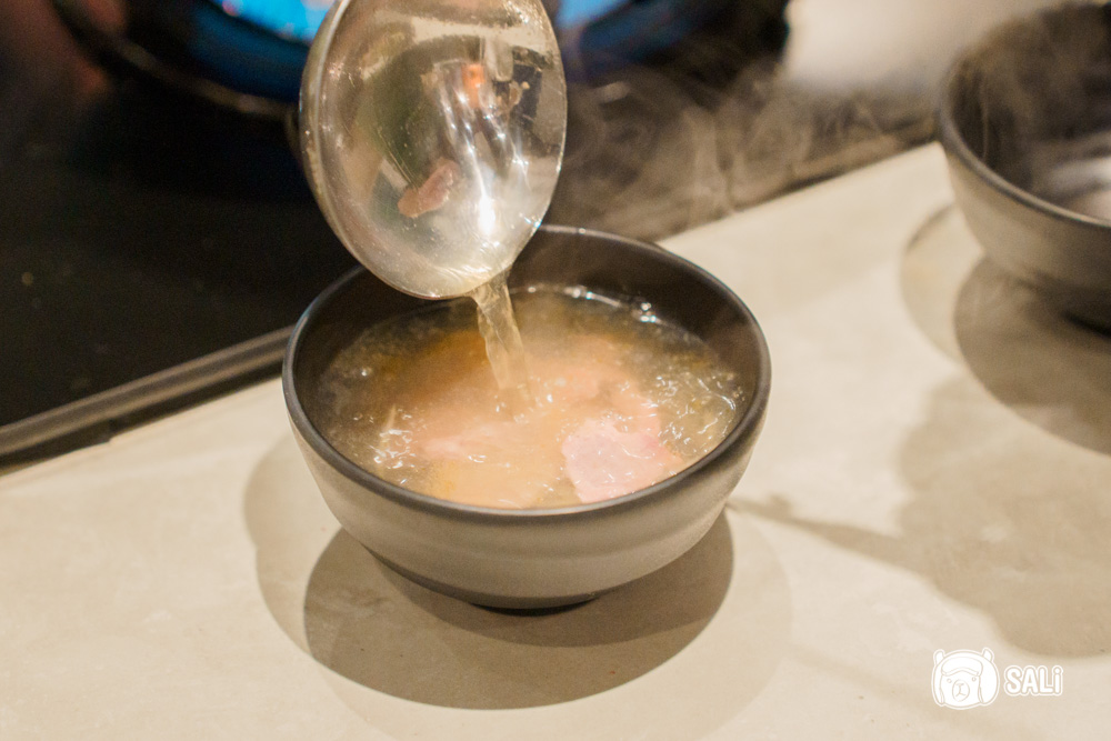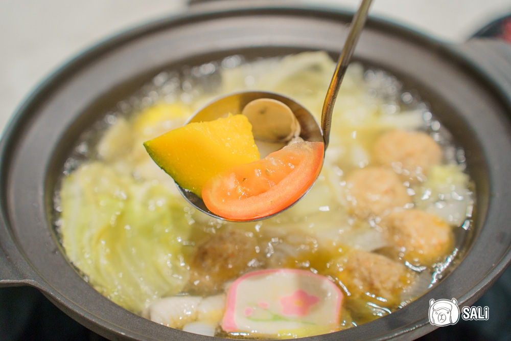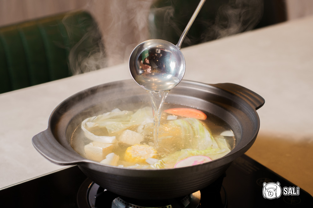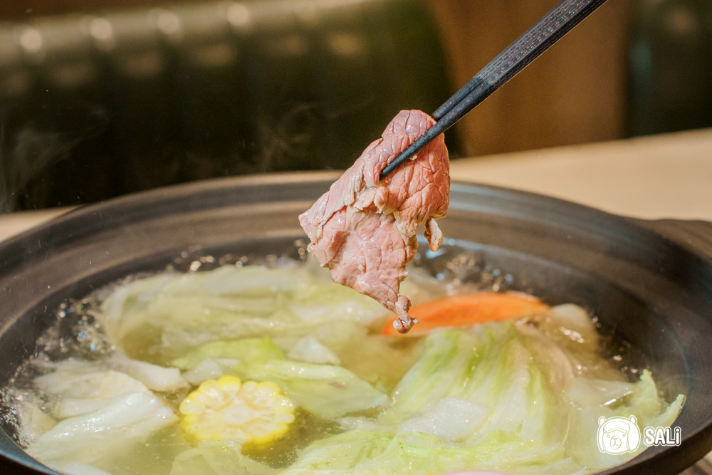 今天和朋友三人一起來攻略,默默就把整桌點好點滿,無牛不歡的我,當然首選濃郁派的牛肉火鍋湯底,使用牛骨、雞骨加多款蔬菜慢火熬煮,單喝就超順口,湯裡本身就放了多款蔬菜及蛤蜊,直接拿來涮牛肉,鮮味整個被帶出來,隨著火鍋一路煮料下去,不管加幾次湯,湯頭風味都不會變淡,反而越煮越甘甜