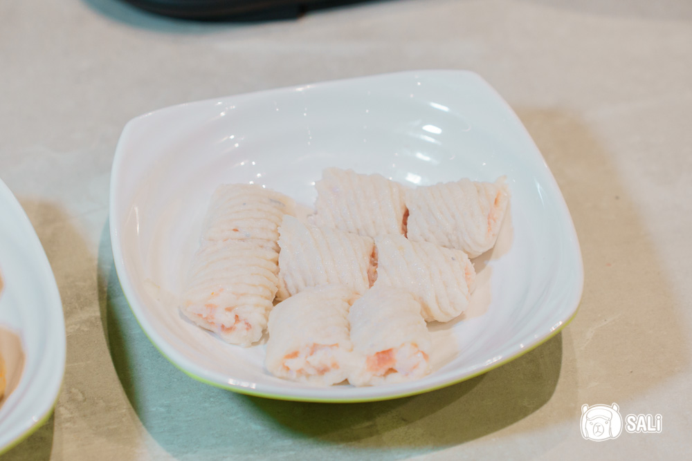 手工魚冊是我少數私心很愛的火鍋料之一,外層是 Q 彈滑嫩的魚漿包覆,內裡則是豬絞肉混合魚肉,比例剛剛好,一咬下去先感受到魚漿的彈性,接著肉餡的鮮香慢慢散開,嘴裡瞬間充滿滿滿鮮味。據說是因為外型像古時候的書冊才叫魚冊,但我只記得它的美好風味(笑)