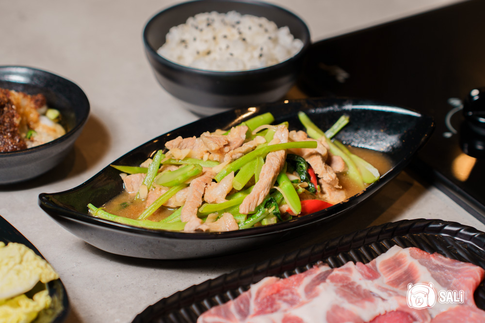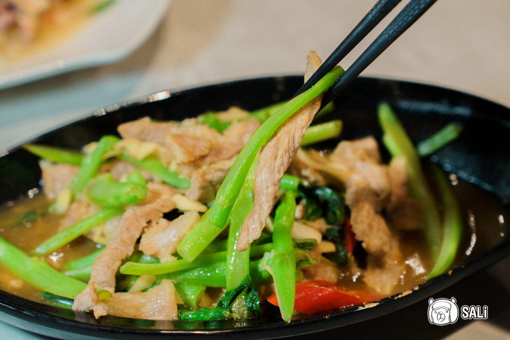 常吃芥藍炒牛肉,但換成炒豬肉其實也很對味!芥藍本身脆嫩微苦,炒得火候剛好,還保有爽口水分,豬肉切成條狀吸附醬香,鹹香中帶點肉甜,超級下飯