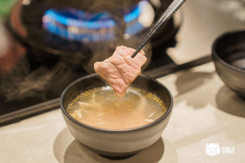下鍋輕涮幾秒,等肉色轉為粉嫩就是最佳時機,入口軟嫩中帶點彈性,肉汁鎖在裡面,咀嚼時散發牛肉本身鮮甜。簡單配點醬料就已經很好吃