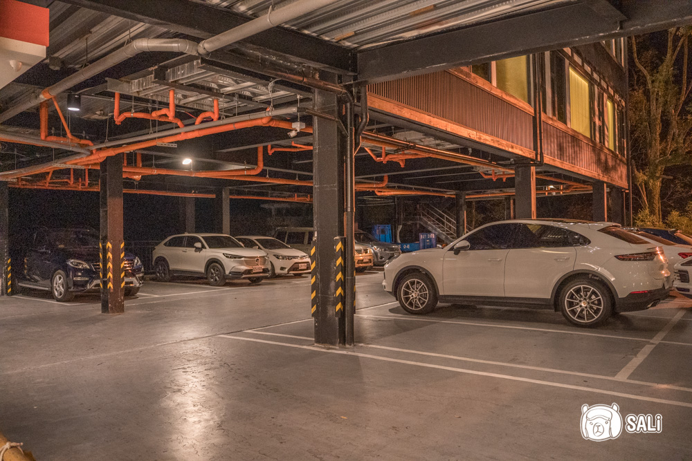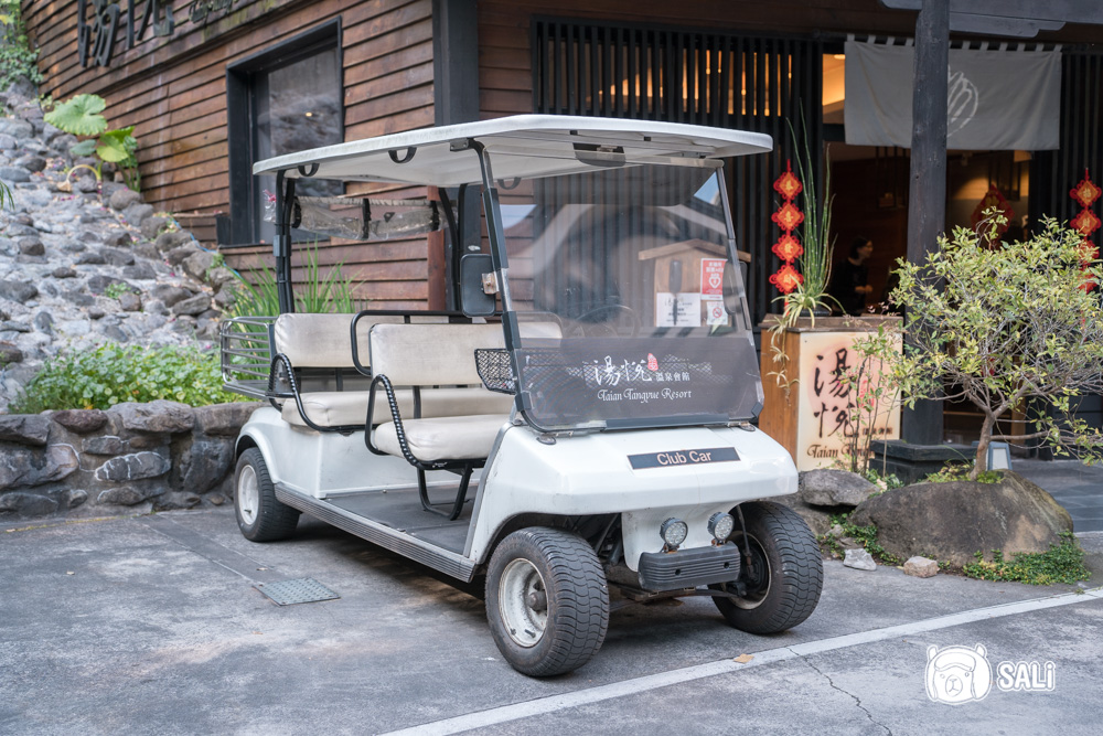 這裡是湯悅溫泉會館的二、三館,建築細節參考了日本清水寺的屋簷,白天走進來像山林裡的日式聚落,一到晚上燈光亮起,竟有點像神隱少女裡會出現的屋子,靜謐中帶點神秘感,蠻有氛圍的,住宿房客的停車區也在這邊,像是要去用餐或到本館泡湯,都有電動車接送,不用自己走來走去。整體動線順、安排清楚,住起來挺自在的