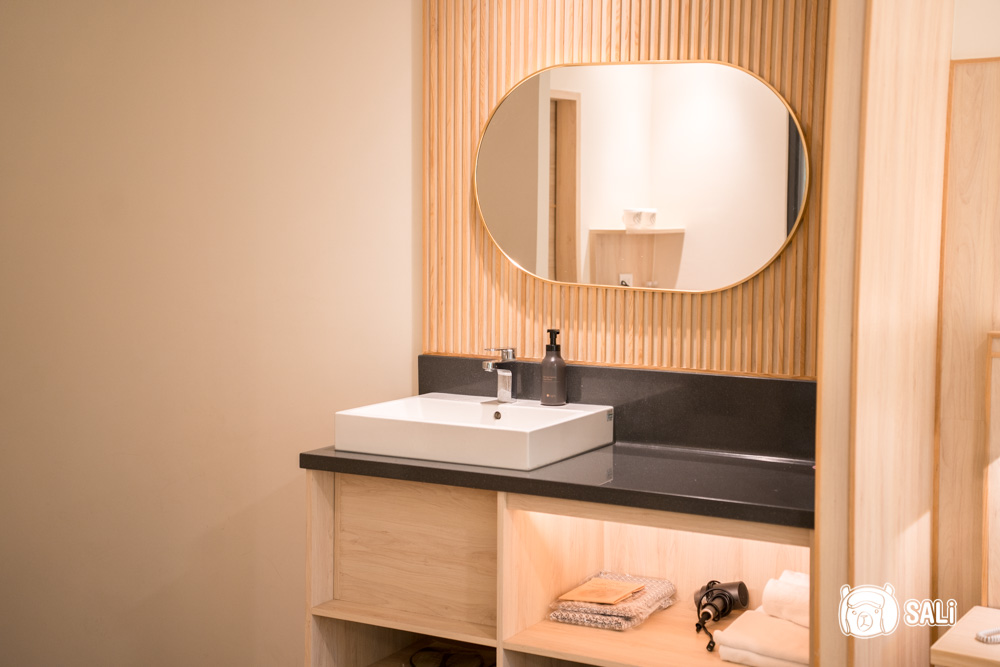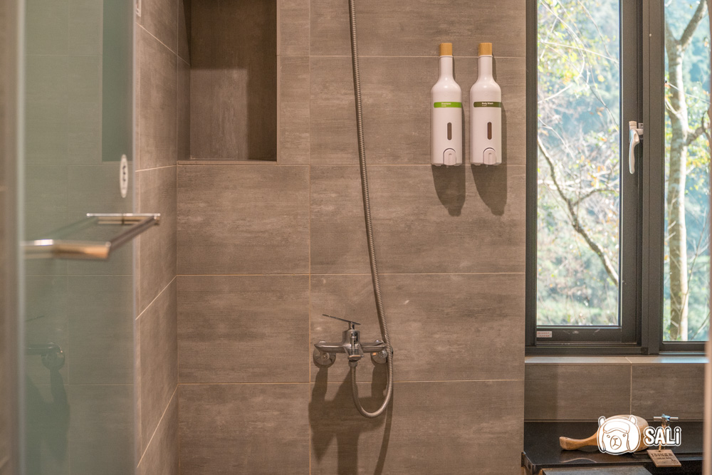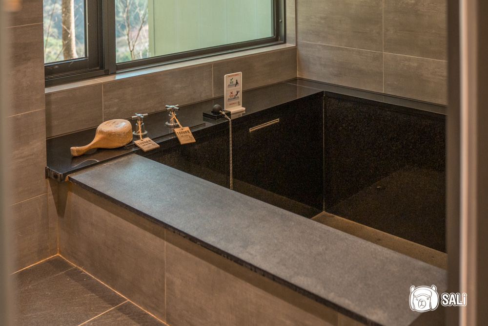 房內除有乾濕分離的淋浴間,還有面山的浴池,白天邊泡湯邊看山景,真的超享受