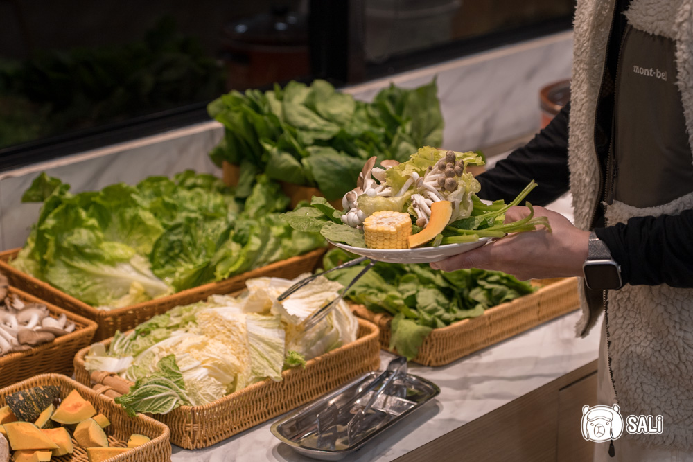 火鍋這邊是小火鍋形式,小農蔬菜和火鍋料吃到飽,對愛吃菜的人來說真的很友善,小農蔬菜鮮甜爽脆,鍋底有七種口味可以挑,肉品也有二選一,想吃牛或豬都OK