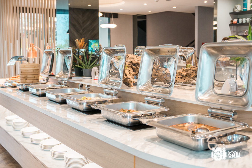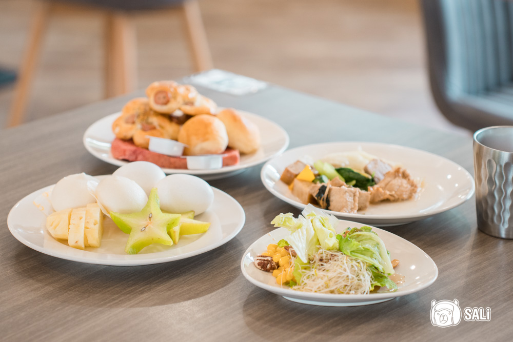 早餐是自助吧形式,選項多到有點驚喜,完全不輸大飯店。從中式的清粥小菜,到西式麵包、吐司、穀片,還有新鮮水果、熱食區,我們本來想吃一點就好,結果一不小心拿了許多,一早肚子就被照顧得很好