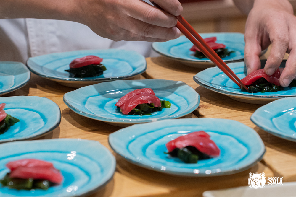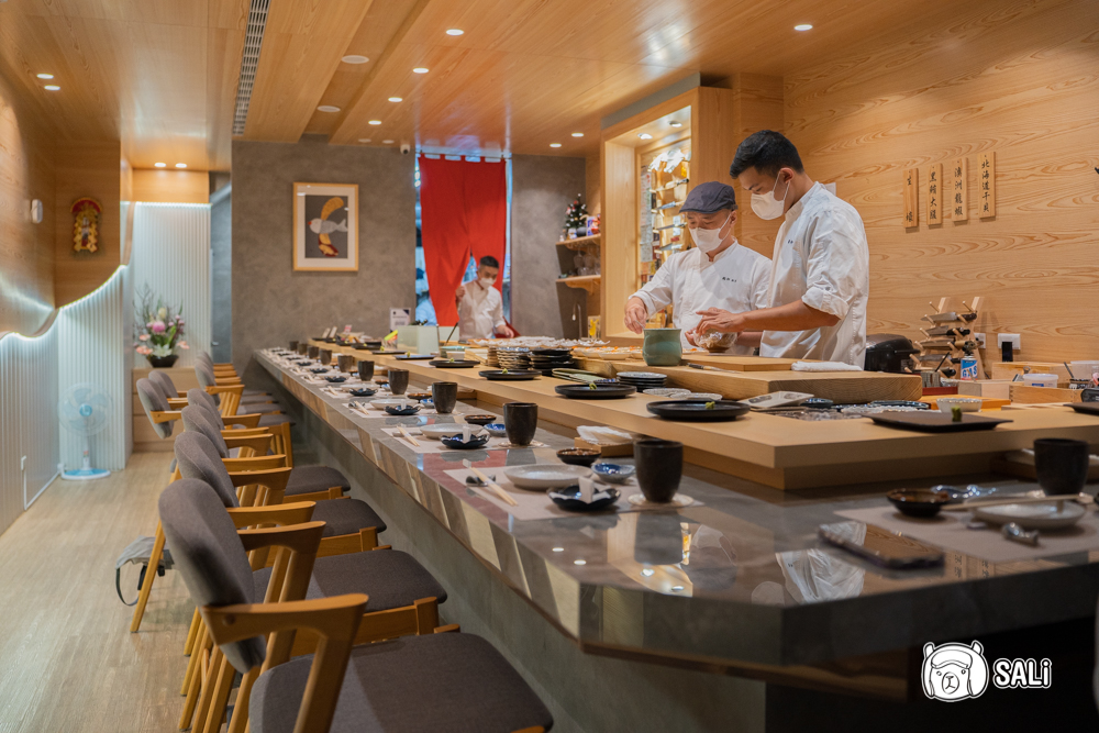 店內僅 12 席板前,全預約制,氛圍輕鬆又不匆忙。坐在吧檯能近距離欣賞主廚處理每一道料理,看刀工、炙燒、擺盤都比追劇還療癒,喜歡板前無菜單日料的朋友,快一起來看看