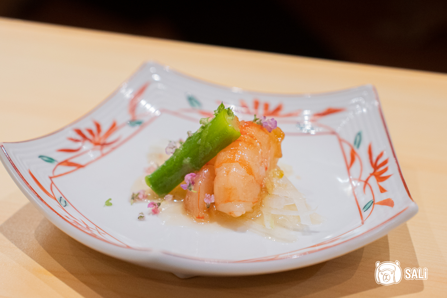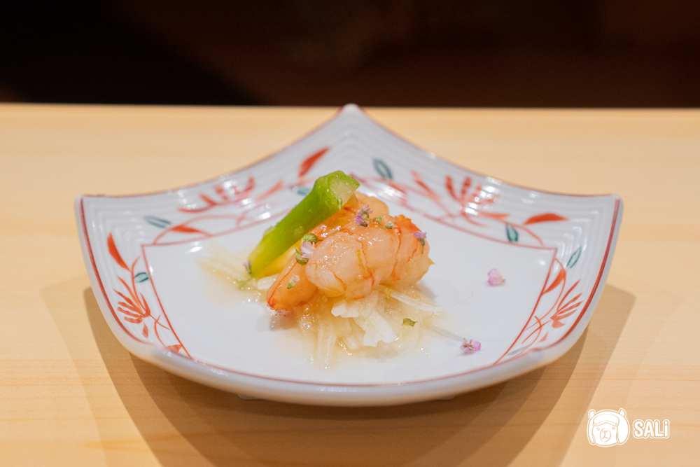 葡萄蝦的肉質柔軟中帶微微彈性,鮮味乾淨明顯;檸檬油醋讓味道多了輕盈酸香,搭配蘆筍的脆爽口感,讓整體風味更俐落