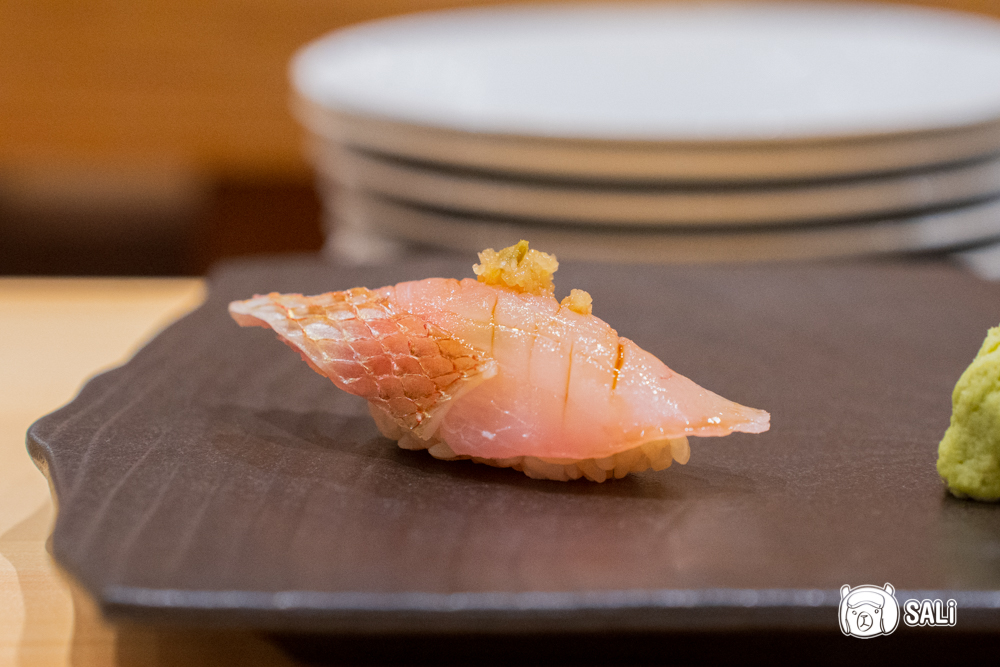 選用來自九洲的蓮子鯛,油脂較少肉質細緻,搭配帶些酸度調味,讓魚肉風味更明亮清爽