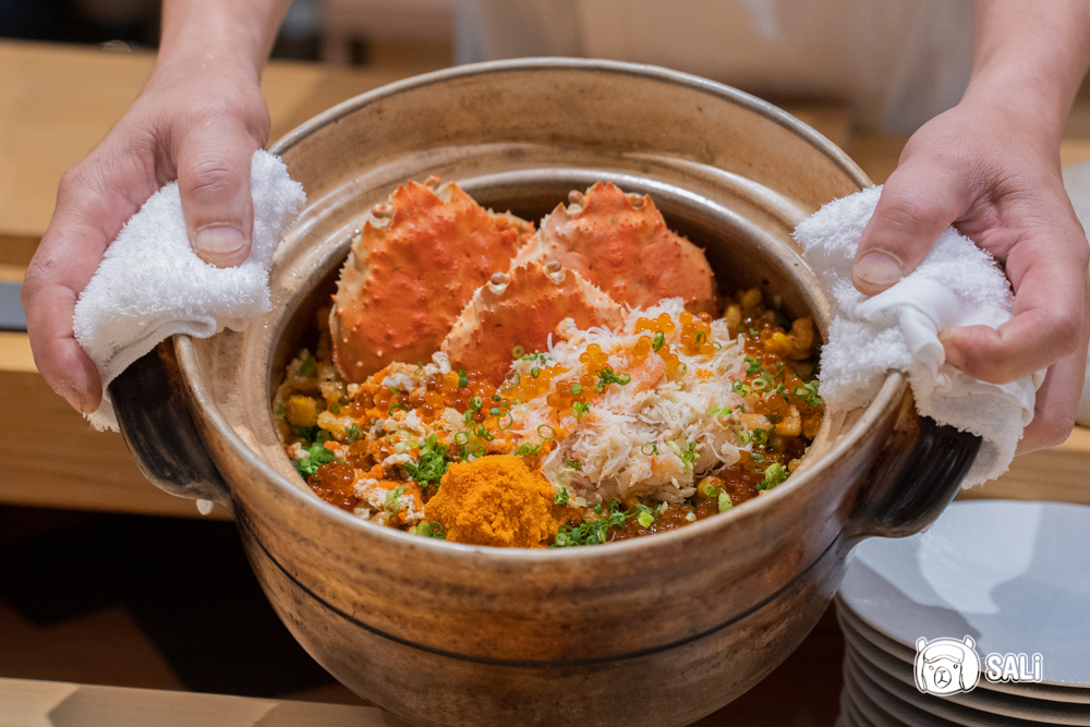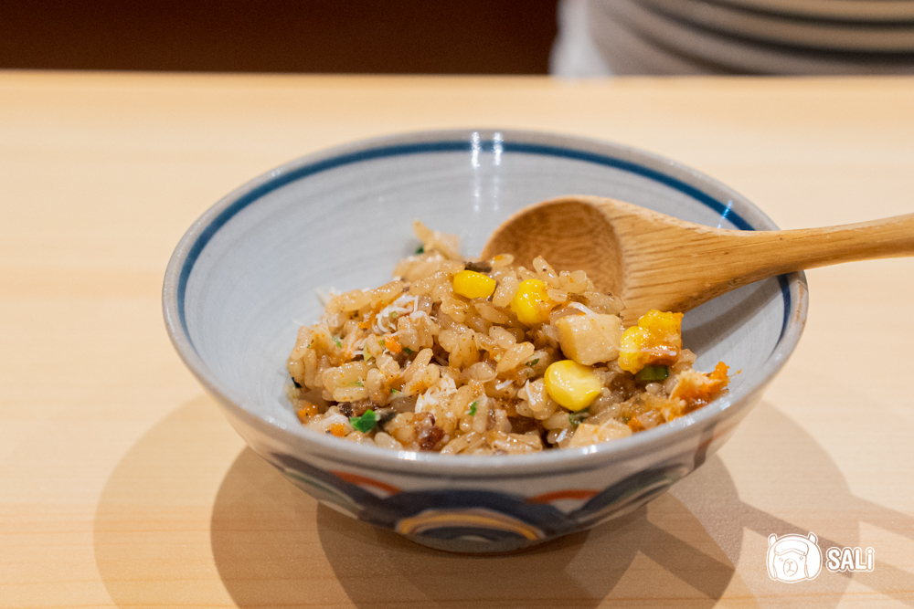以日本月光米加入高湯慢煮,米粒飽滿帶黏度,每一口都有湯汁的鮮甜與蟹香,裡頭拌入蟹肉、筍片、玉米、菇類與洋蔥,層次由清甜到鮮味依序堆疊,最後以鮭魚卵作點綴,咬破時再增加一個海味爆點。整體走溫潤路線,不會過度調味,是明明已經很飽卻仍會想再挖一口的療癒系釜飯